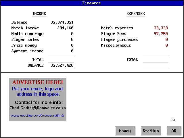 Following are a few screen shots from the actual game. Click on the smaller picture to few the full 640x480 picture as you would see it on the screen. To return to this screen, click the